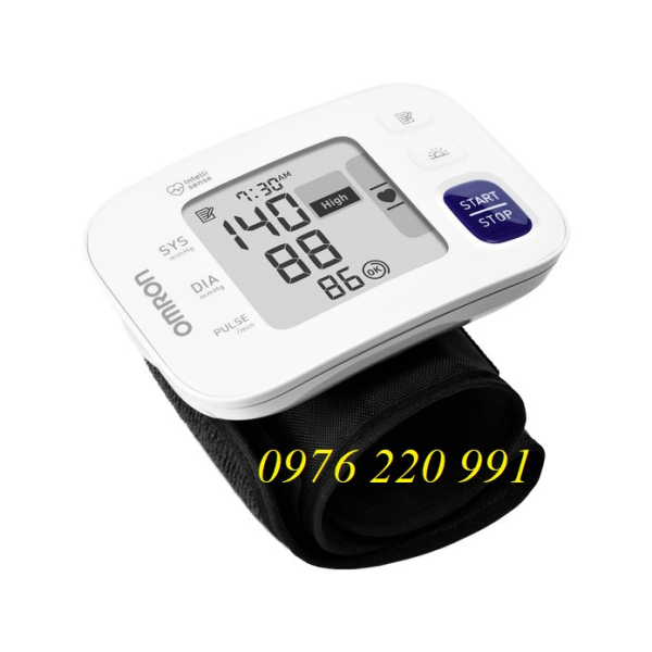Máy đo huyết áp cổ tay hoàn toàn tự động Omron HEM-6181 với công nghệ cảm biến thông minh Intellisense. Máy có chức năng phát hiện rối loạn nhịp tim và hướng dẫn quấn vòng bit đúng.