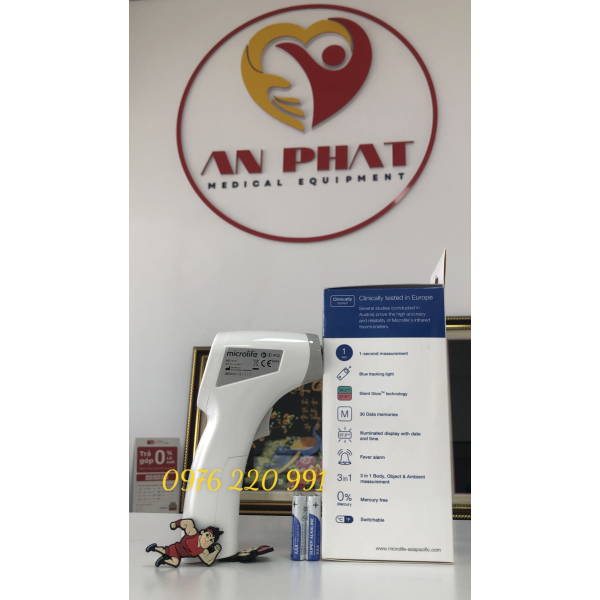 Nhiệt kế hồng ngoại Microlife NC300 đã được kiểm nghiệm lâm sàng tại Châu Âu và được các bác sỹ khuyên dùng . Chức năng cảnh báo sốt 10 tiếng bíp nhanh liên tục kèm theo màn hình chuyển sang màu đỏ khi nhiệt độ lên cao quá 37.6 độ C